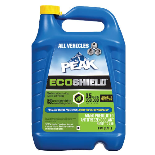 Driving sustainability forward, PEAK ECOSHIELD™ is crafted with 95% renewable materials—delivering eco-smart, long-term engine protection that lasts 15 years or 350,000 miles.